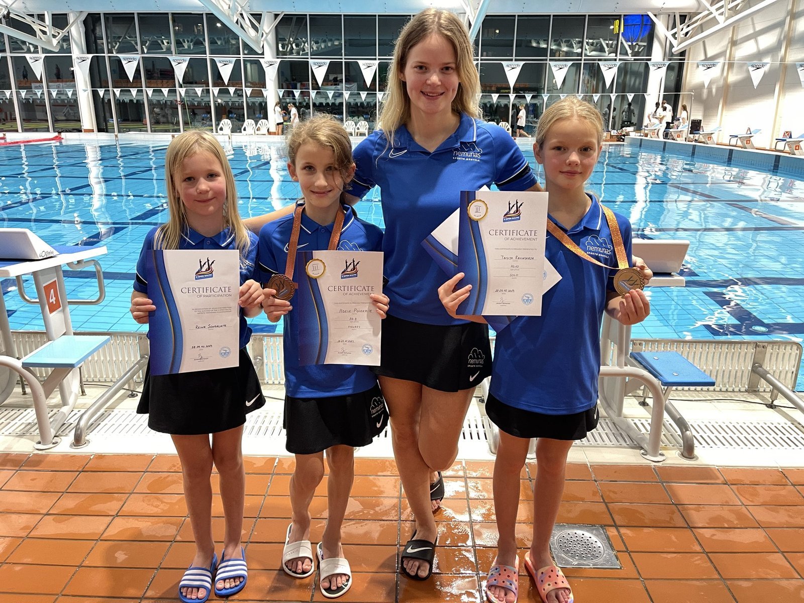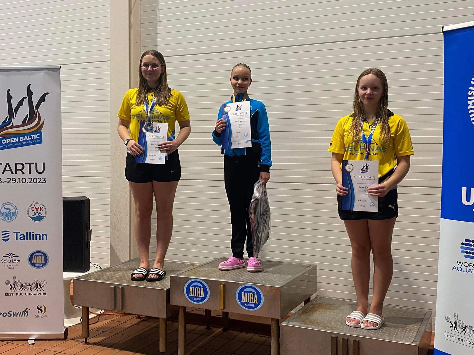 12 m. ir jaunesnių mergaičių grupėje Baltijos šalių čempione tapo Miglė Poškevičiūtė (tren. Kristina Zajauskienė). Šiaulių plaukimo centro „Delfinas“ auklėtinės privalomąją programą (24 dalyvės) čempionato teisėjai įvertino aukščiausiai – 62,0964 balo.