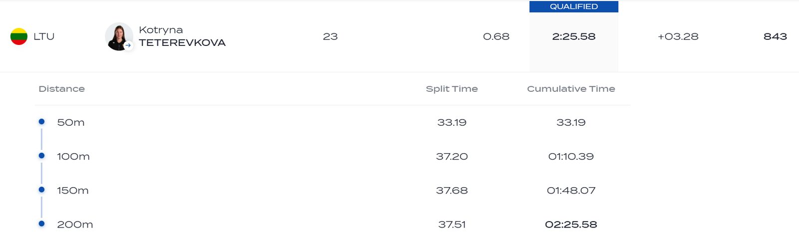 „Maksimaliai nespaudžiau, nes kaip ir buvau užtikrinta dėl patekimo į pusfinalį, norėjau iš karto neišsikrauti ir pataupyti jėgas. Labai sunku vertinti rytą, nes gali būti apgaulinga – vienos plaukia greitai ir galbūt yra pavargusios, kitos – kaip tik tauposi ir tik neparodo rezultato“, – sakė K. Teterevkova.