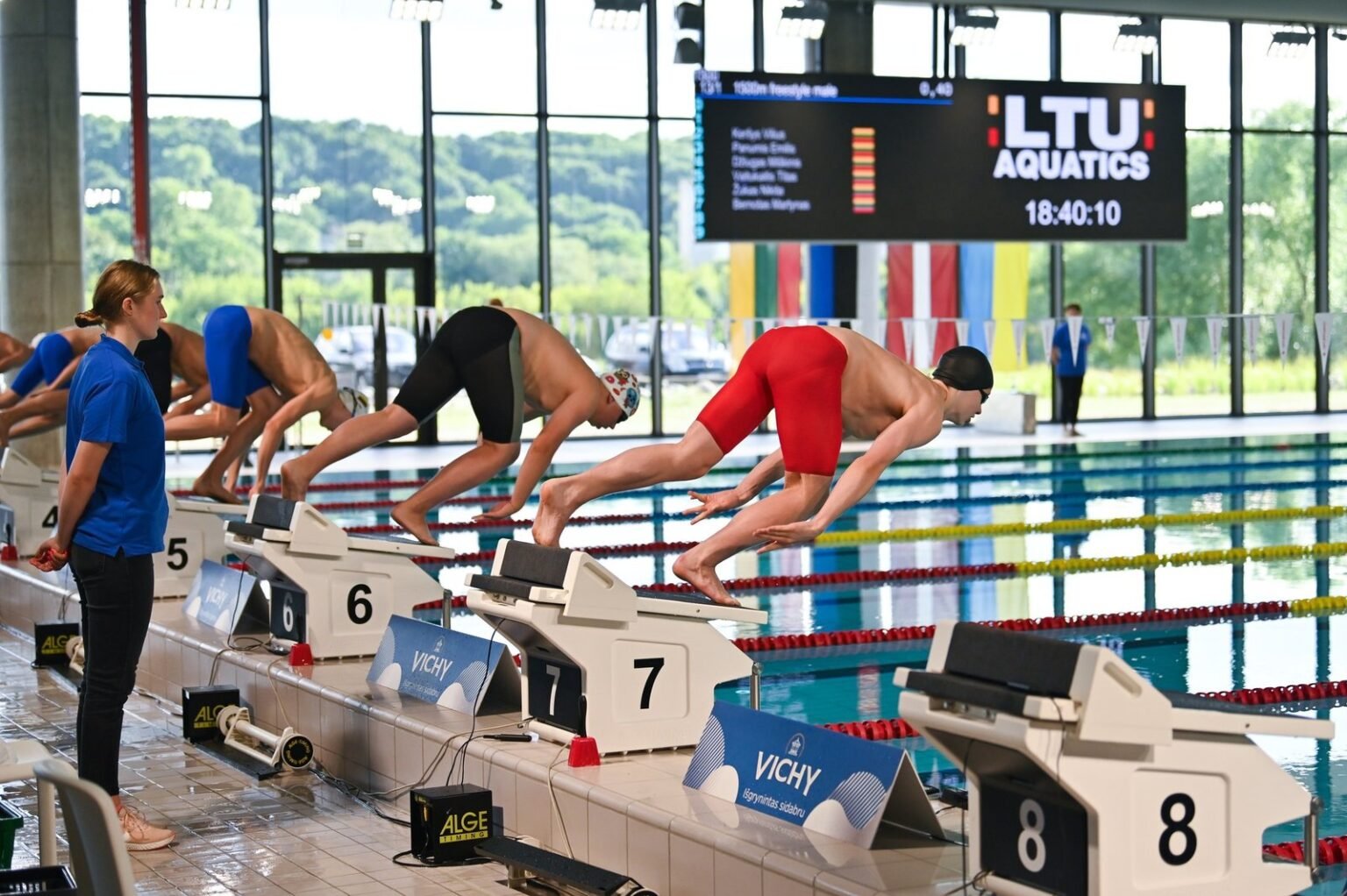Ilgiausioje pirmenybių distancijoje – 1500 m plaukimo laisvu stiliumi rungtyje – nugalėjo kaunietis Džiugas Miškinis. Lietuvos rekordininkas nuotolį įveikė per 16 min. 2,53 sek. ir įtikinama persvara įveikė visus varžovus.