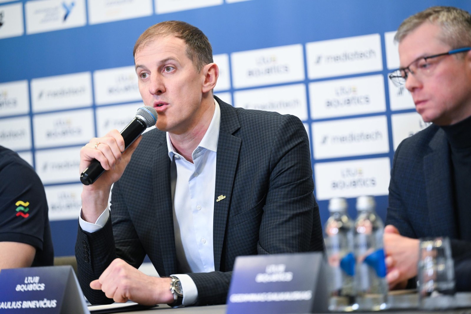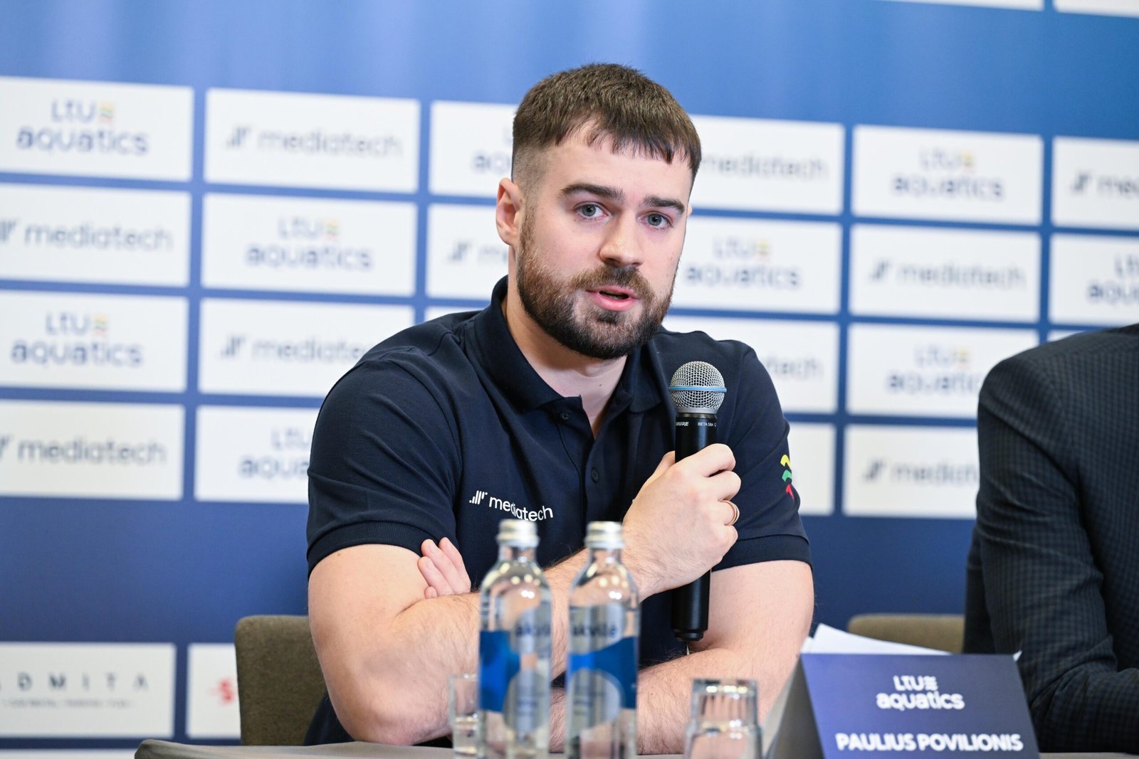 „Mediatech“ parama prisidės prie Lietuvos plaukimo rinktinės stovyklų ir šių metų varžybų. Jų planus konferencijoje pristatė „LTU Aquatics“ vyr. treneris Paulius Povilionis.