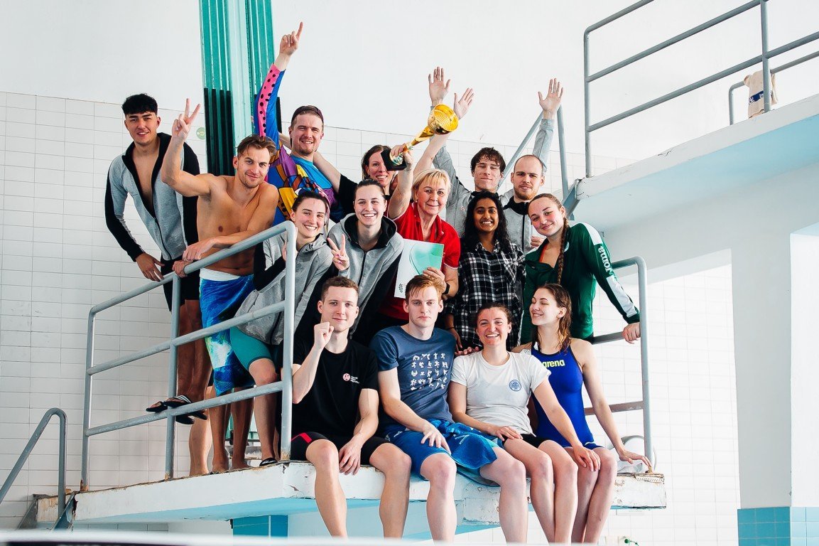 LSU triumfą studentų čempionate vainikavo komandos vadovės, Lietuvos olimpiečių asociacijos viceprezidentės dr. Birutės Statkevičienės OLY šuolis į pergalingą baseiną.