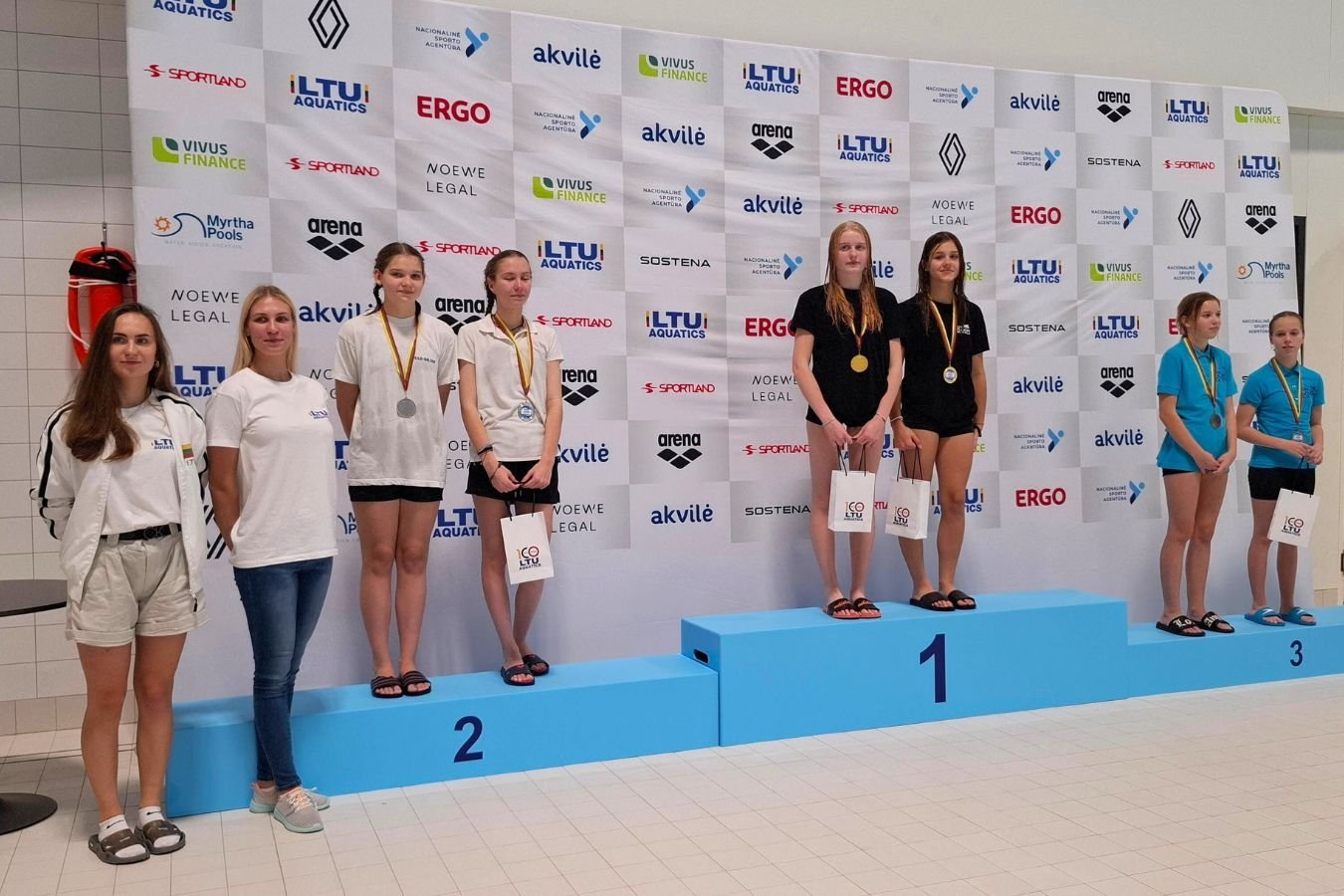 Sinchroninių šuolių rungtyje nugalėtojais tapo kaunietės Smiltė Mikelaitytė ir U. Brazytė, surinkusios 130,08 balo, bei vilniečiai G. Varneckis ir Adomas Barysas – 151,38 balo.