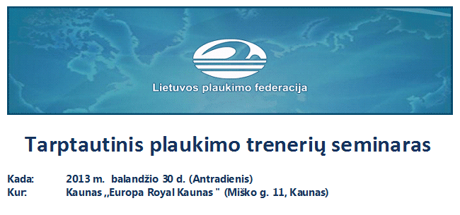 Tarptautinis plaukimo trenerių seminaras balandžio 30 d.