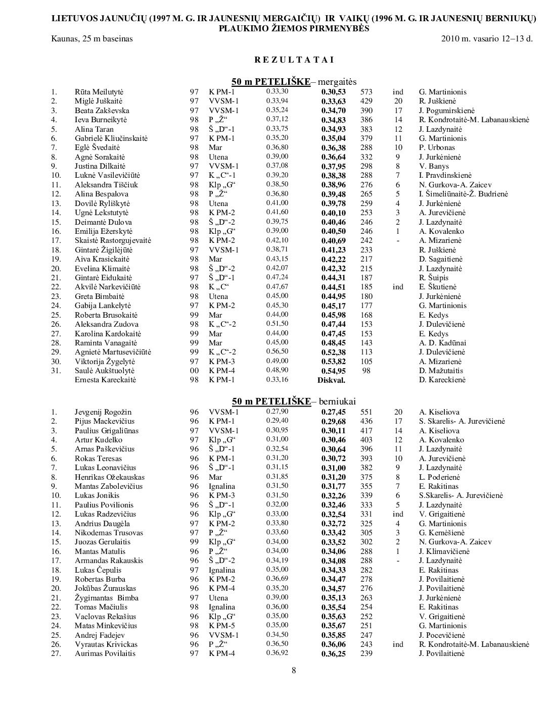 Atviros 2010 m. Lietuvos plaukimo žiemos pirmenybės skirtos S.Krasauskui atminti