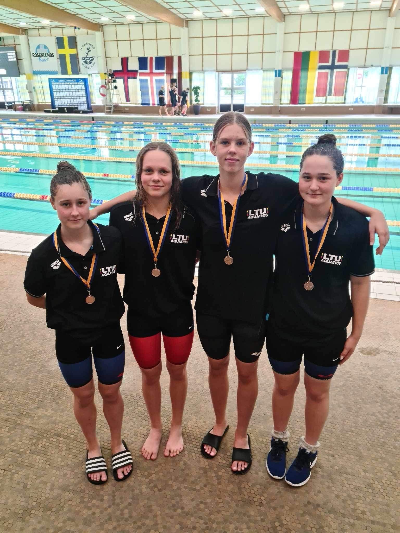 Bronzos medalius Lietuvai iškovojo Ugnė Šiautkulytė (800 m laisvu st. – 9 min. 32,73 sek.), Dominik Grudinskij (100 m nugara – 59,78 sek.) ir trys estafečių komandos – berniukų 4 x 100 m kompleksiniu b. (Arminas Murėnas, Dominykas Šulskis, Rokas Milvydas ir Artas Apinys – 3 min. 59,11 sek.)., mergaičių 4 x 100 m laisvu st. (Guoda Tručinskaitė, Ūla Kulvinskaitė, Emilija Pociūtė ir Ieva Jurkūnaitė – 4 min. 0,72 sek.) ir berniukų 4 x 100 m laisvu st. (Artas Apinys, Arminas Murėnas, Kajus Rimkus ir Arnas Augustinavičius – 3 min. 36,69 sek.).