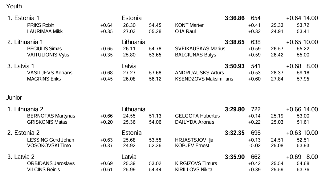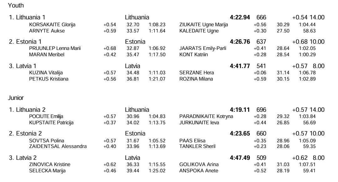 Jaunimo amžiaus grupėje Lietuvos komanda buvo greičiausia (3 min. 29,80 sek.) – M. Bernotas, Matas Griškonis, H. Gelgota ir A. Dailyda. Antrąją vietą užėmė Estijos komanda, o bronzos medalius pelnė latviai.