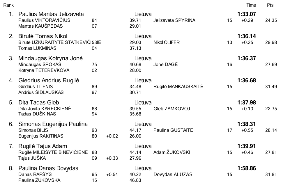 | 1 vieta | Panevėžio Žemyna | 3 min. 11,54 sek. |