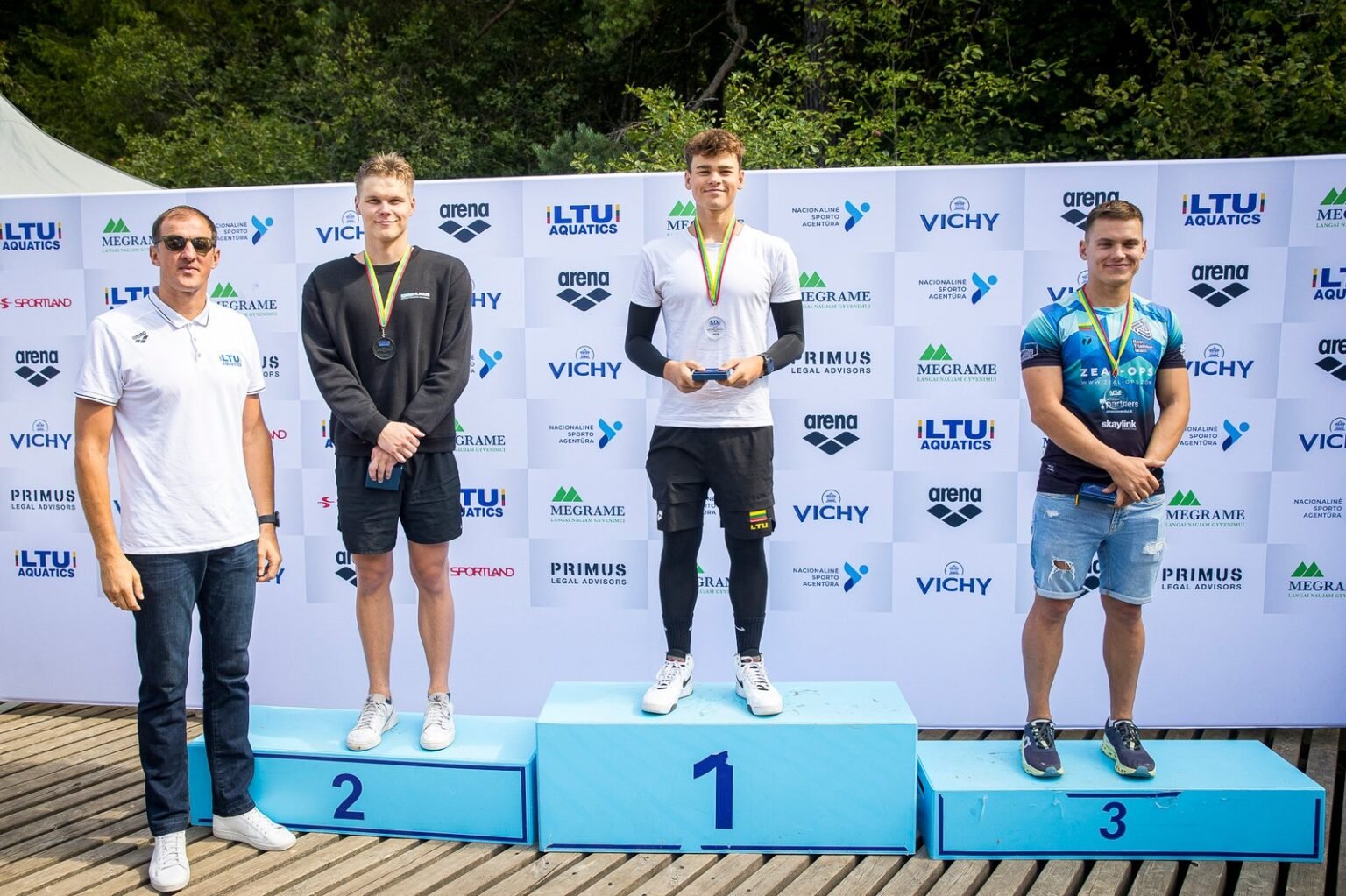 Lietuvos atviro vandens čempionato prizininkams specialiai šiam renginiui pagamintus medalius įteikė asociacijos „LTU Aquatics“ prezidentas Saulius Binevičius, pats taip pat dalyvavęs trumpesnio nuotolio varžybose.