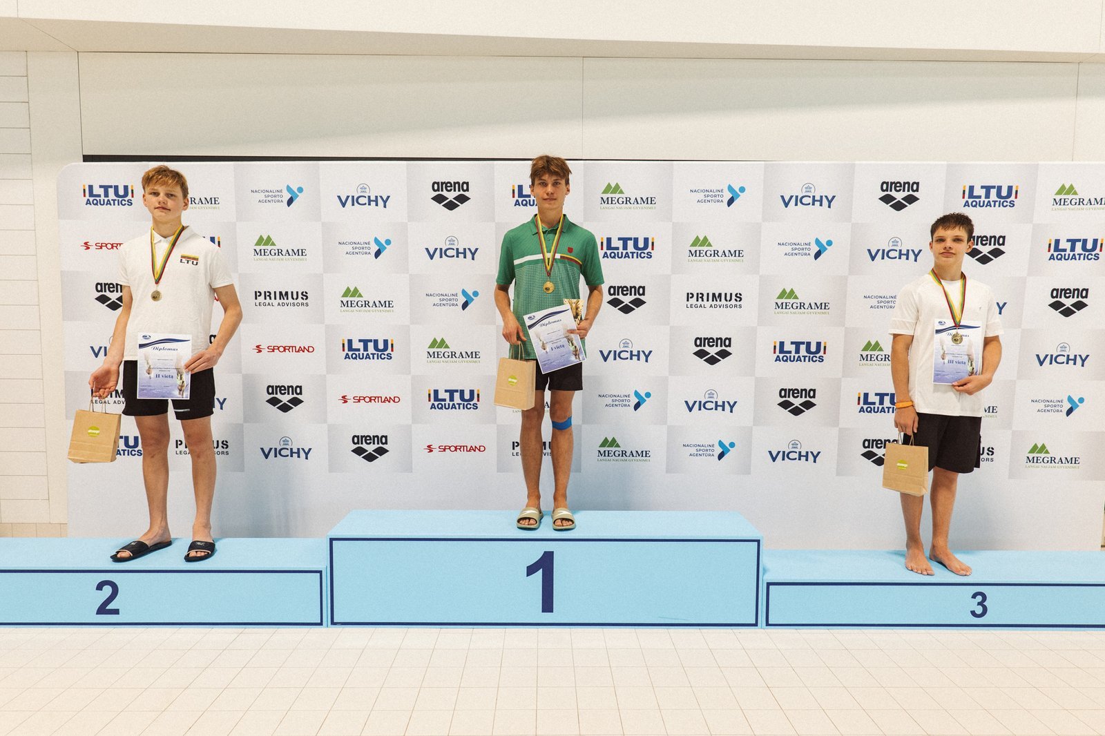 Vaikinų šuolių į vandenį nuo 1 m tramplino rungtyje užtikrintai pasirodė vilnietis Martynas Lisauskas. Pasaulio jaunimo čempionato finalistas iš viso surinko 330,95 balo ir pelnė aukso medalį.