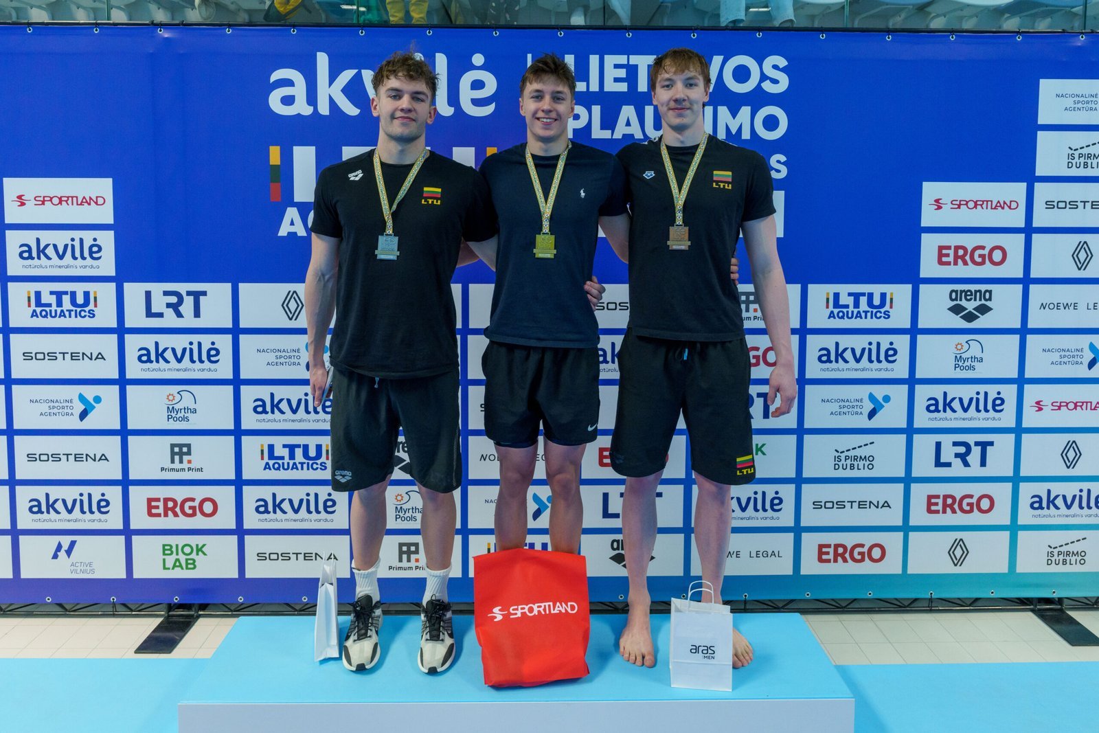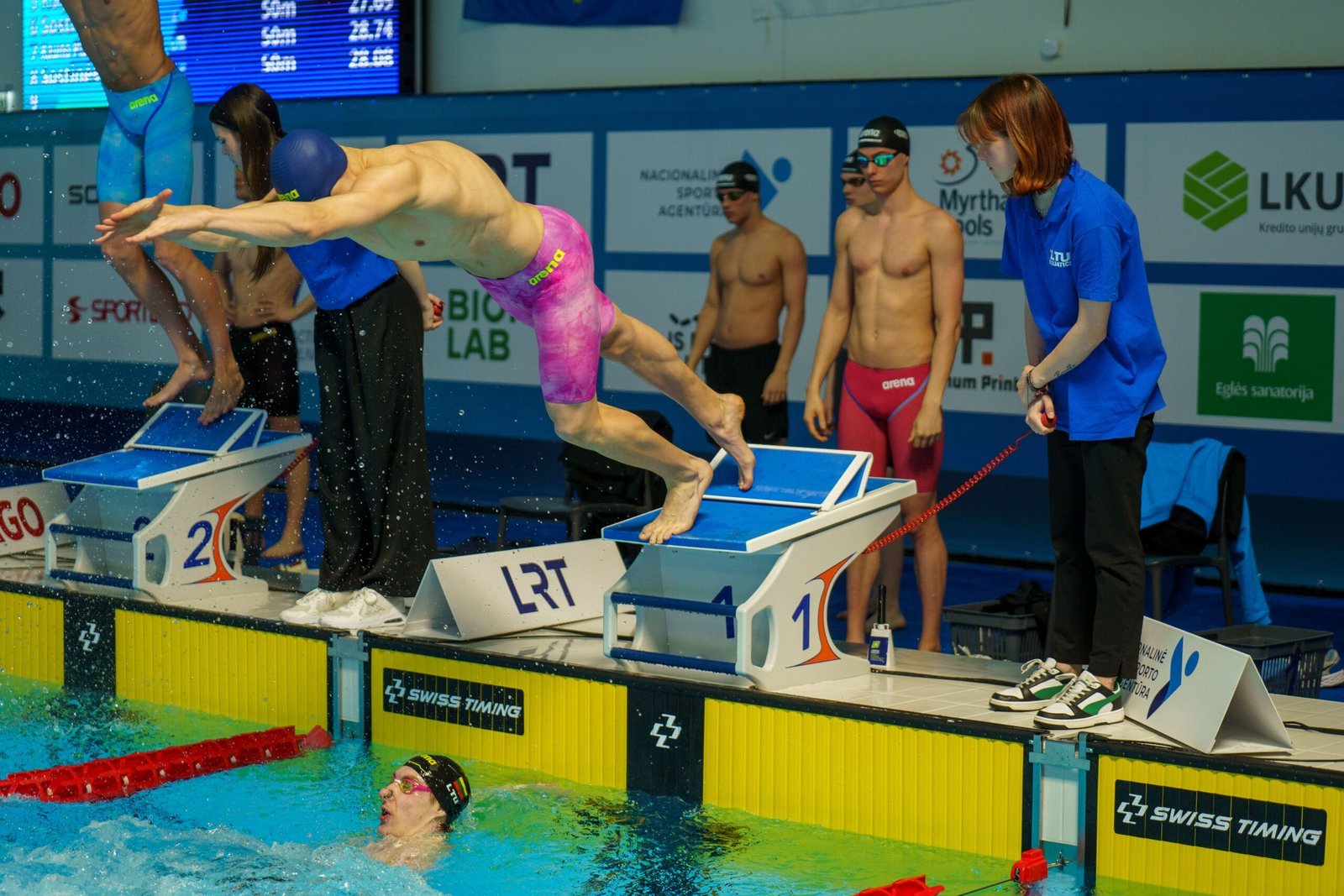 Pirmojoje finalo rungtyje – 100 m laisvuoju stiliumi – pasirodęs kaunietis Tajus Juška aplenkė šios rungties rekordininką Daną Rapšį. 16-metis plaukimo talentas nuotolį nuplaukė per 48,91 sek., o D. Rapšys – per 49,09 sek. Kauno plaukimo mokyklos talentas T. Juška įvykdė ir pasaulio jaunimo čempionato normatyvą. Trečiąją vietą užėmė Panevėžio Žemynos auklėtinis Kristupas Trepočka.