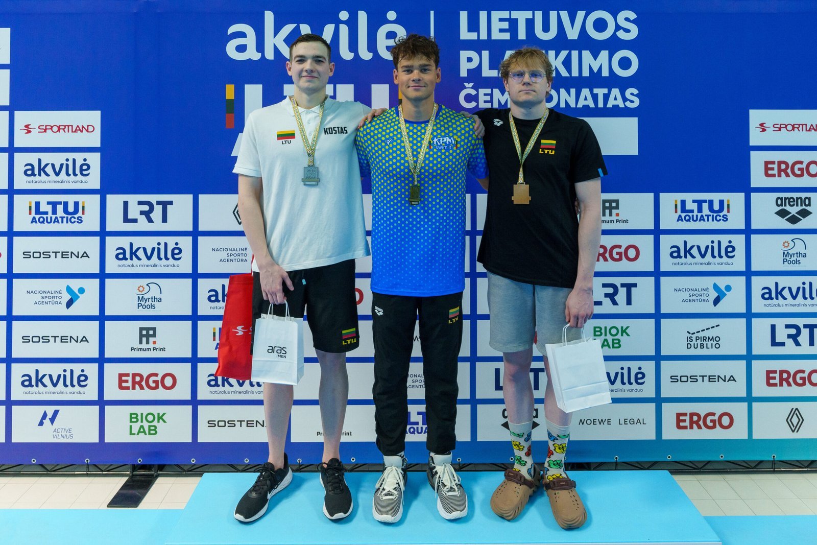 Po trumpesnių nuotolių į vandenį šoko Džiugas Miškinis. 800 m laisvuoju stiliumi plaukęs kaunietis nuotolį įveikė per 8 min. 07,77 sek. Sidabro medalį pelnė panevėžietis Kostas Vaičiūnas (8:16,53), o trečiąją vietą užėmė „LTU Aquatics“ 19+ programos plaukikas Titas Štuopis.
